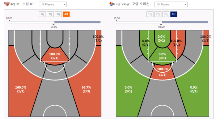 - 2점슛 성공률 : 약 47%(16/34)-40%(18/45)
