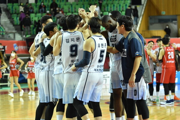 전주 KCC는 22일 대구실내체육관에서 열린 2021-2022 KGC인삼공사 정관장 프로농구 정규리그에서 대구 한국가스공사를 68-67로 꺾고 5할 승률에 복귀했다.