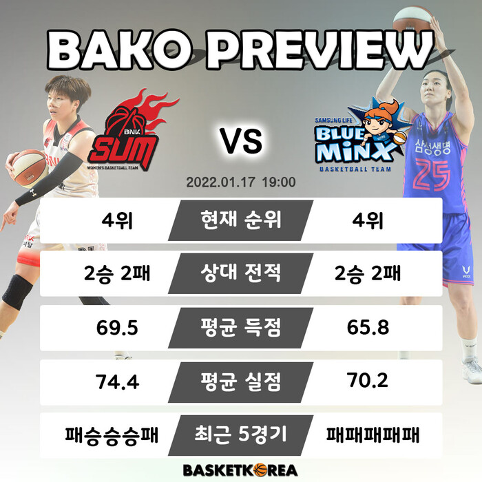 [BAKO PREVIEW] 2022.01.17 BNK 썸 vs 삼성생명