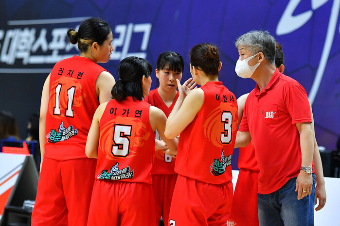 단국대는 2쿼터 후반 확 무너졌다. 울산대의 연이은 3점포에 흔들렸다. 2쿼터 종료 부저가 울렸을 때도 실점. 단국대는 26-35로 전반전을 마쳤다. 위기에 봉착했다.