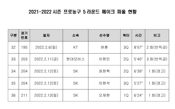 KBL, 2021~2022 5라운드 페이크 파울 명단 공개
