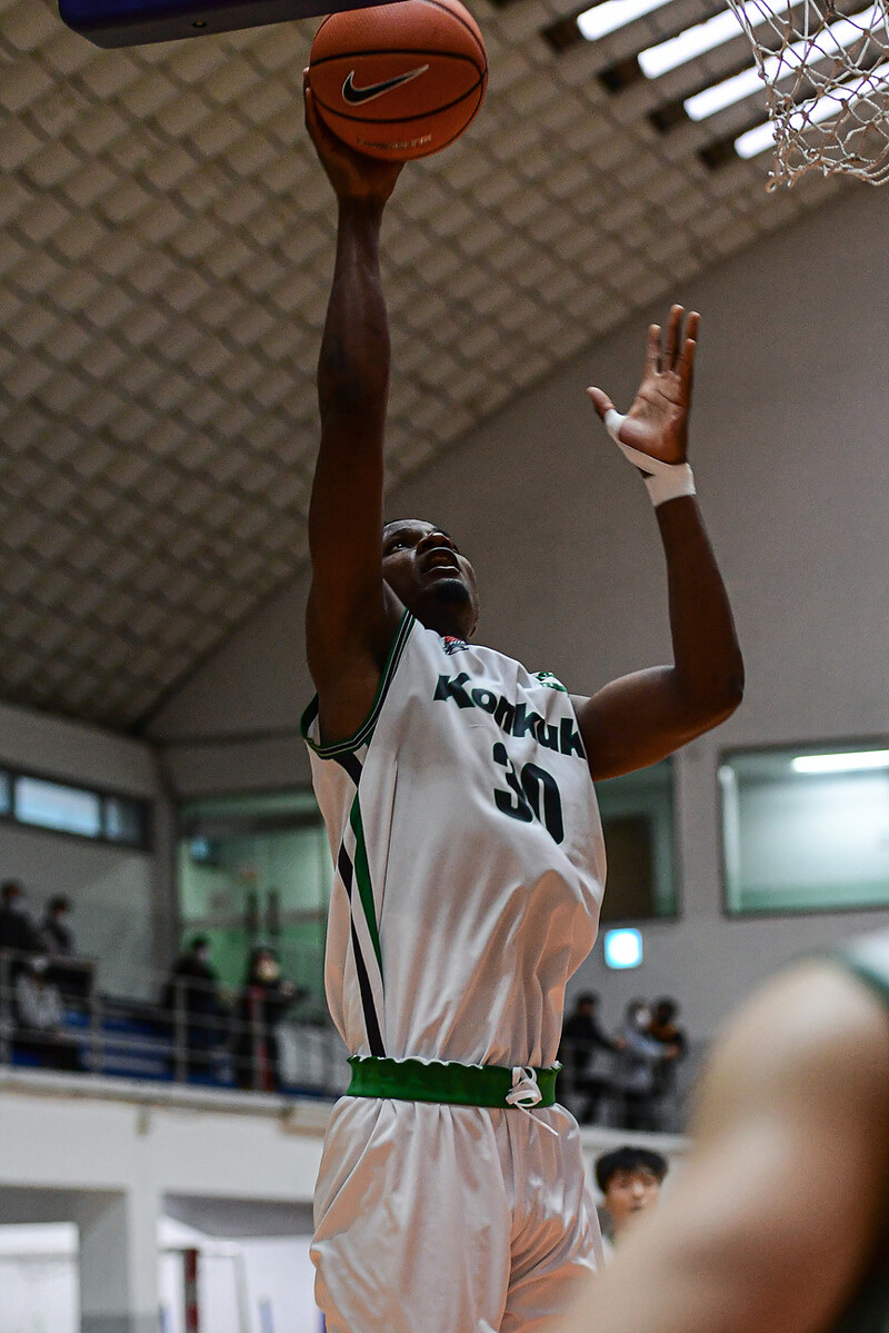 유창석(180cm, G)의 돌파와 김환(185cm, G)의 3점포에 추격을 허용했다. 그러나 프레디가 또 한 번 높이를 활용했다. 그러자 외곽 자원의 활로가 열렸다. 3점과 돌파 모두 자유자재로 했다. 골밑과 외곽 모두 터진 건국대는 48-31로 전반전을 마쳤다.