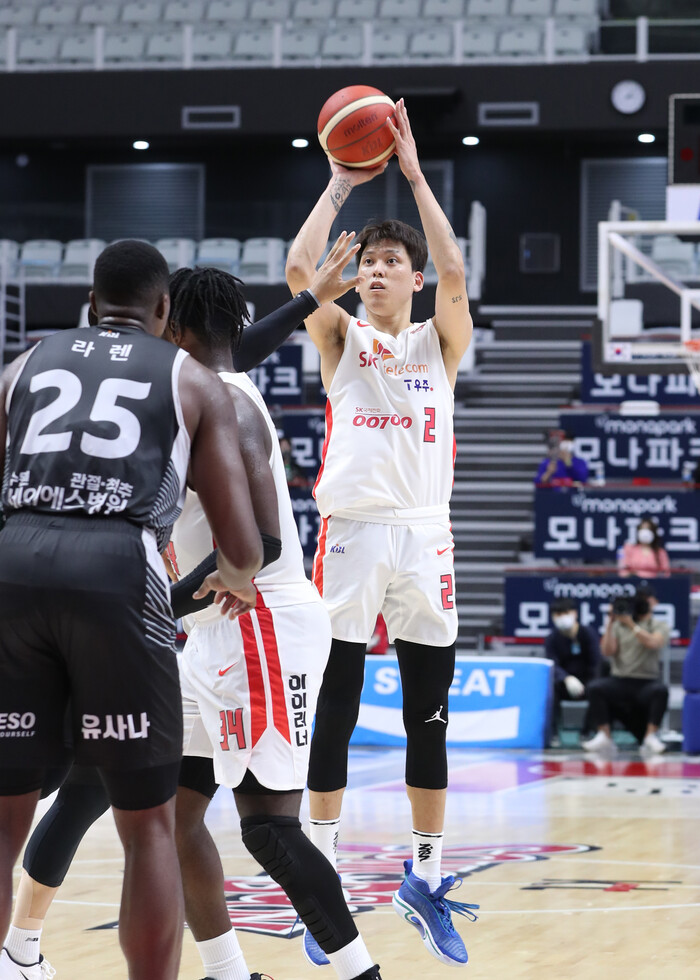 서울 SK는 23일 수원 kt 소닉붐 아레나에서 열린 2021~2022 KGC인삼공사 정관장 프로농구 정규리그에서 수원 kt를 81-76으로 꺾었다. 4승 2패를 기록했다. kt와 공동 2위에 올랐다.