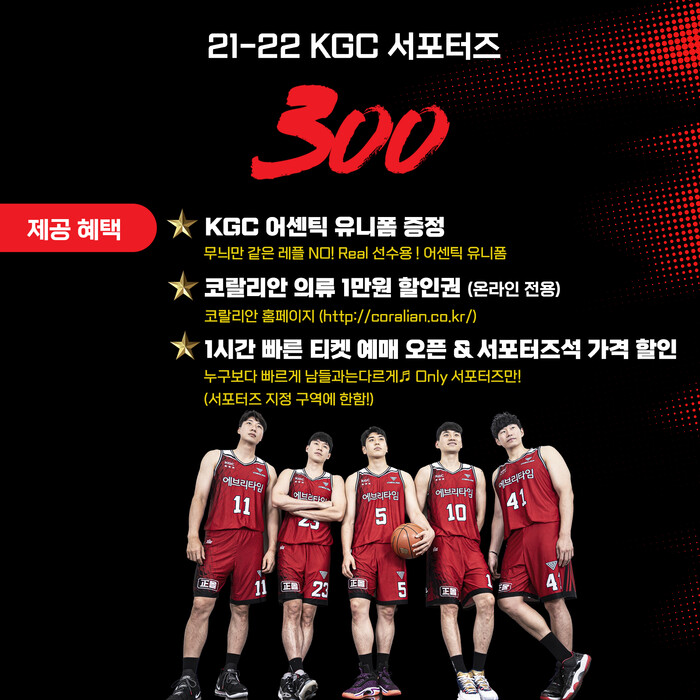 안양 KGC인삼공사, 2021~2022시즌 '서포터즈 300' 모집
