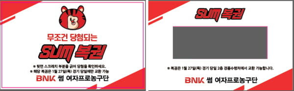 부산 BNK 썸, 27일 홈경기 설맞이 ‘무꽝 SUM 복권 이벤트’ 진행