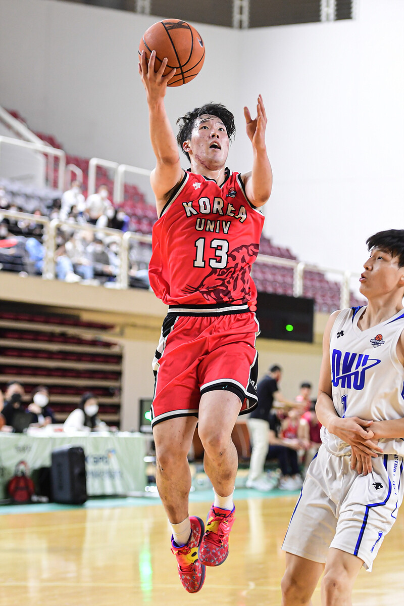 고려대학교(이하 고려대)는 7일 고려대 화정체육관에서 열린 2022 KUSF 대학농구 U-리그 정규리그에서 건국대학교(이하 건국대)를 85-73으로 꺾었다. 정규리그 1위를 이미 확정한 고려대는 13승 1패로 정규리그를 마쳤다. 반면, 건국대는 5할 승률(7승 7패)로 정규리그를 마쳤다.