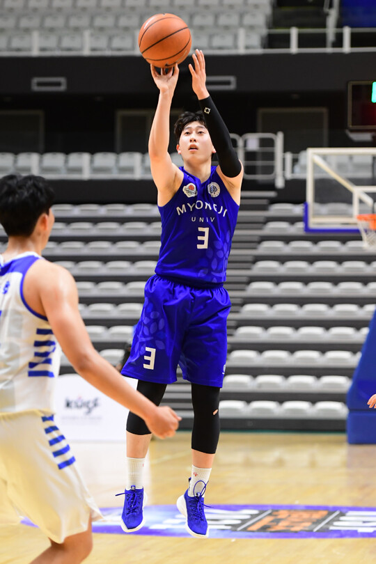 명지대는 전반전에 승기를 잡았다. 전반전 스코어 49-29. 신입생인 소준혁(186cm, F)의 역할이 컸다. 소준혁이 전반전에만 14점을 퍼부었고, 이날 팀 내 최다인 18점에 야투 성공률 73%(2점 : 6/6, 3점 : 2/5)를 기록했다.