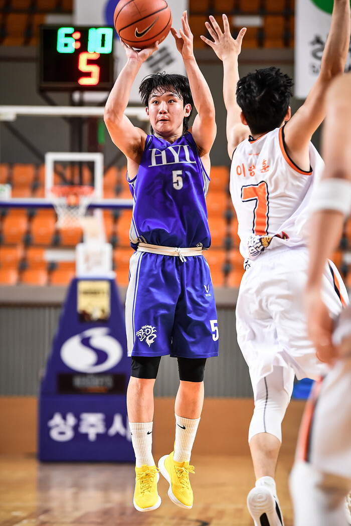 김민진은 1차 대회와 3차 대회 모두 스크린 활용 후 미드-레인지 점퍼로 재미를 보고 있다. 정재훈 한양대 감독은 지난 19일 경기 종료 후 “(김)민진이 수비수가 1차 대회와 3차 대회 때 민진이의 슛을 버리는 걸 보고, 민진이가 많은 자극을 받은 것 같다”며 수비수의 움직임을 자극의 이유로 설명했다.
