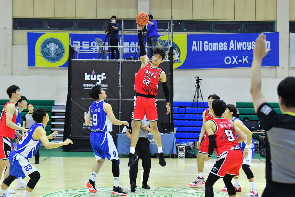 고려대학교(이하 고려대)가 2일 충주 건국대 글로컬캠퍼스 내 체육관에서 열린 2021 KUSF 대학농구 U-리그 플레이오프 8강에서 중앙대학교(이하 중앙대)를 99-89로 꺾었다.