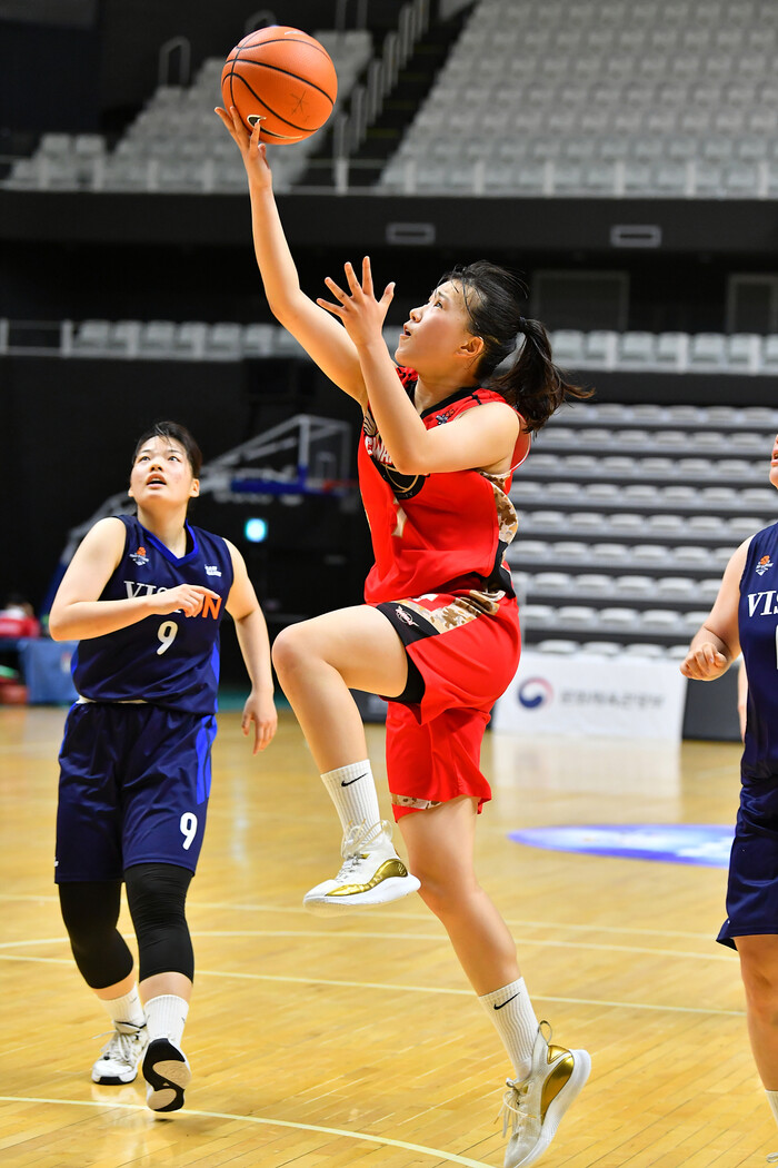 마지막 4쿼터. 비전대는 맹추격에 나섰다. 풀코트 프레스를 꺼내들며 상대 실책을 끌어냈다. 수비가 되자 공격도 살아났다. 노혜윤이 3점 1개 포함 7점을 몰아쳤다. 최지혜도 3점을 추가한 비전대는 8점차까지 좁혔다.