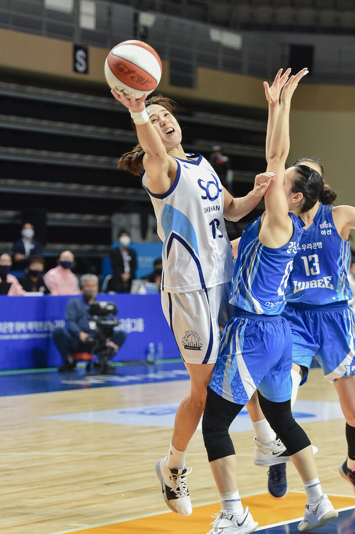 반면, 신한은행은 이경은의 점퍼, 김아름의 자유투로 도망갔다. 이어 김단비와 한엄지도 득점에 가세하면서 승기를 잡아갔다.