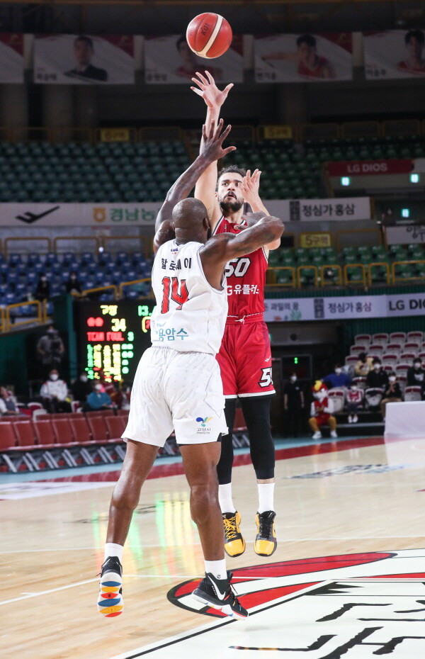 마레이가 골밑을 장악하며 LG의 승리를 이끌었다.