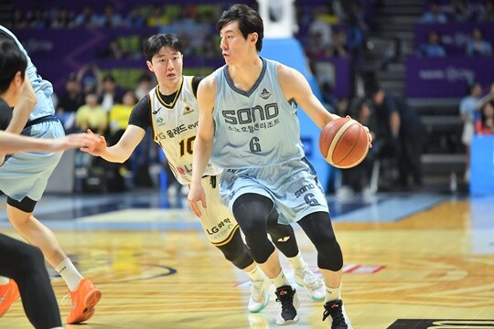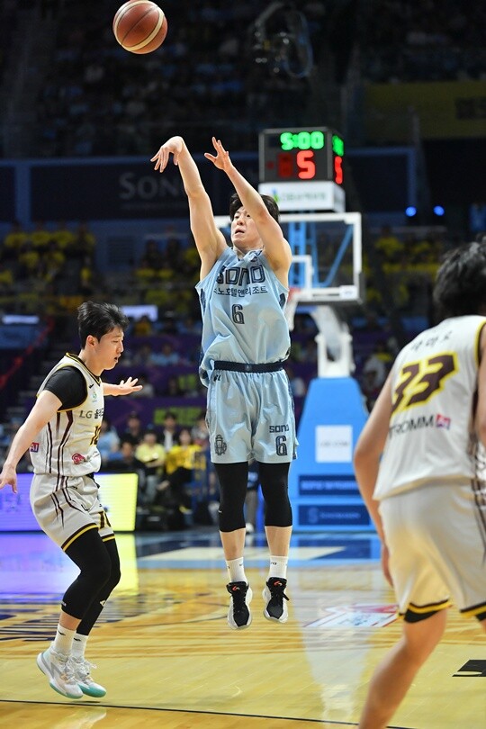이정현의 2대2가 코너에 있는 이근준(193cm, F)에게 이어졌다. 이근준이 이를 3점으로 마무리. 소노는 LG와 간격을 조금 더 벌렸다. 26-19로 1쿼터를 마쳤다.