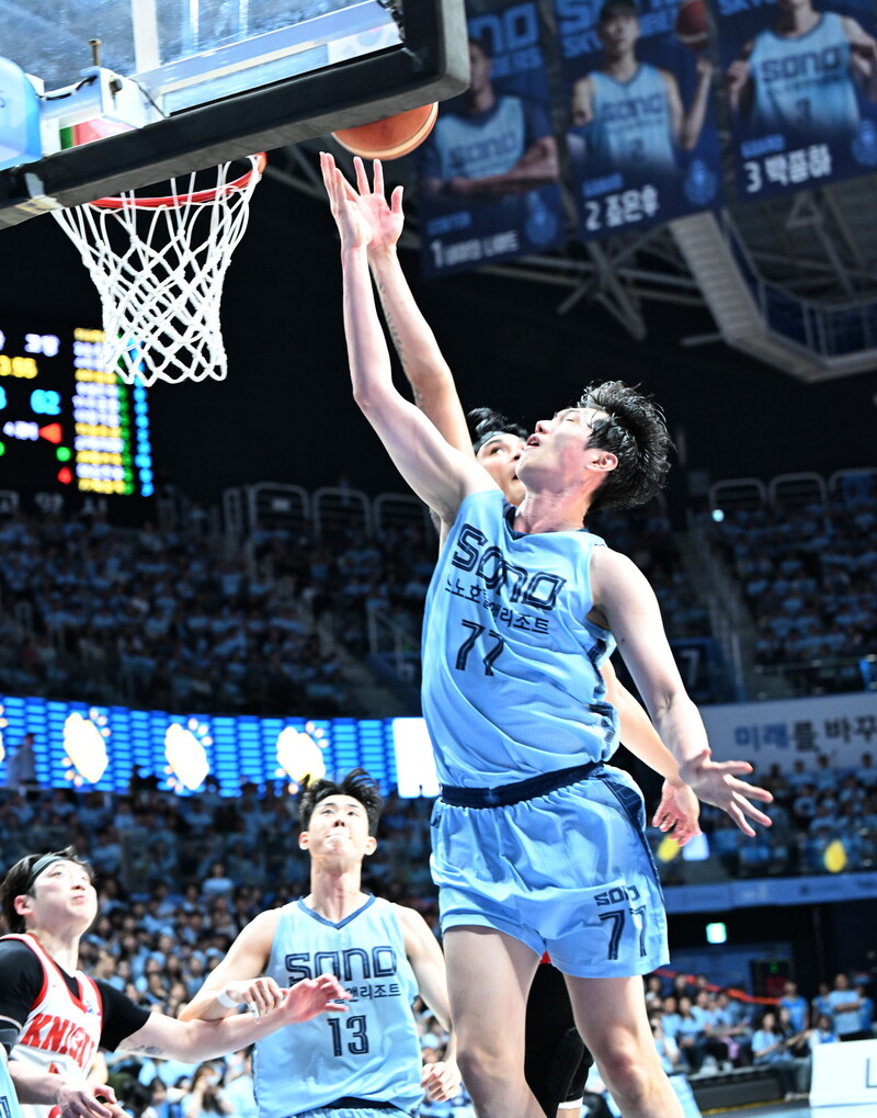 그렇지만 소노의 공격 셀렉션이 계속 좋지 않았다. 이는 SK의 속공으로 연결됐다. 소노는 수비 진영을 정돈하지 못했다. SK한테 3점을 연달아 맞았다. 경기 종료 1분 25초 전 동점(62-62)을 허용했다.