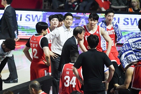공격을 실패한 SK는 공격 리바운드를 하지 못했다. 그런데 너무 많은 인원이 공격 리바운드에 참가했다. 그 대가는 참담했다. 3쿼터 종료 2분 17초 전 50-61. 전희철 SK 감독이 후반전 두 번째 타임 아웃을 써야 했다.