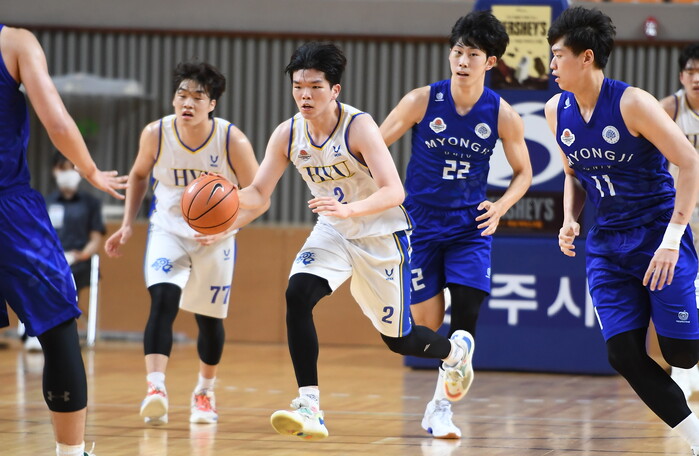 한양대는 24일 상주실내체육관에서 열린 제37회 MBC배 전국대학농구 상주대회 남대부 6강 경기에서 명지대를 87-58로 제압했다.