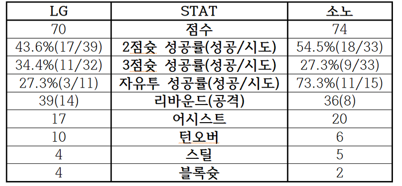 [LG-소노, 6라운드 맞대결 주요 기록]