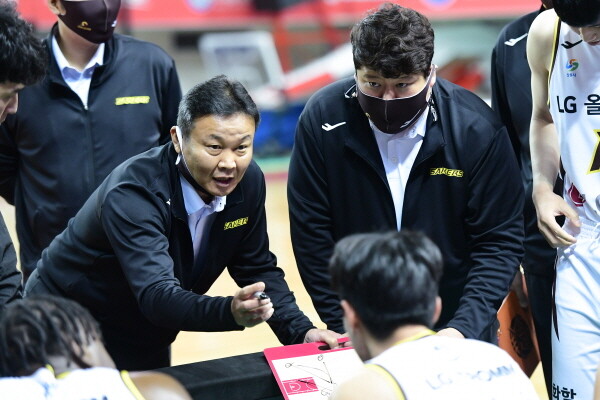 ‘시즌 첫 승’ LG 조성원 감독 “(서)민수의 3점이 큰 도움 돼”