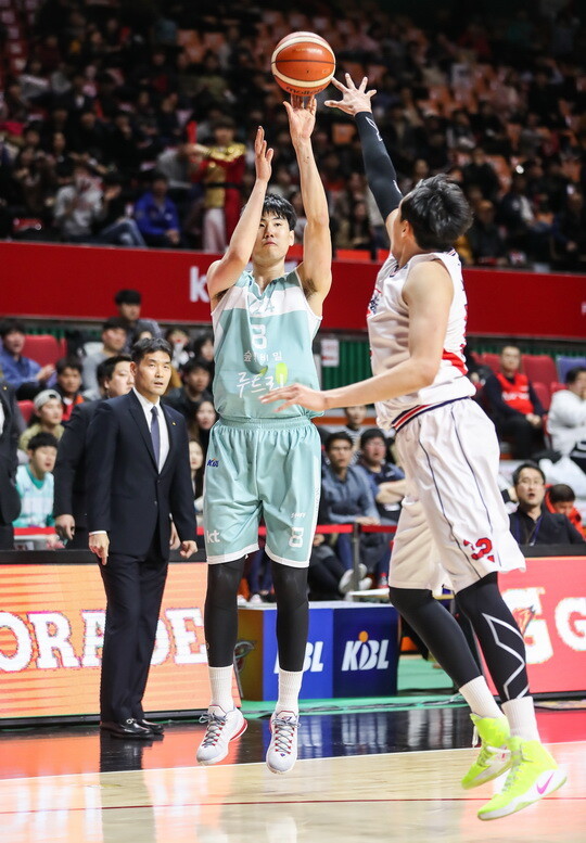 부산 KT는 2일 부산사직체육관에서 열린 2017~2018 정관장 프로농구 울산 현대모비스와 홈 경기에서 95-88로 이겼다.