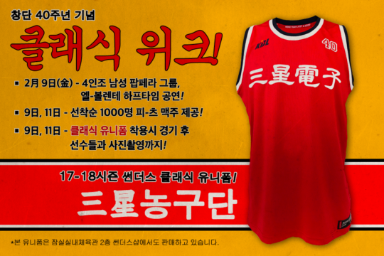 [바스켓코리아=최요한 객원기자] 서울 삼성이 9일(금), 11일(일) 홈 연전을 클래식 위크로 지정해 창단 40주년을 기념한다.