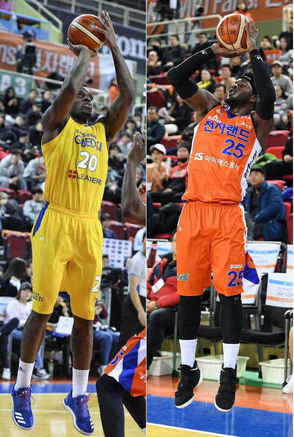 | 최근 외국선수 드래프트에서 1순위로 선발된 뒤 꾸준하게 활약 중인 리카르도 라틀리프와 교체된 조쉬 셀비(사진 오른쪽) |