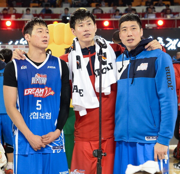 | KBL 올스타전에서 함께 추억을 쌓은 이정현과 오세근, 양희종(사진 왼쪽부터) |