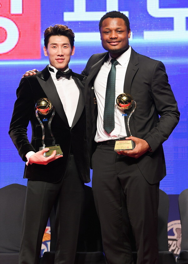 | 두경민과 함께 MVP를 동시에 수상한 DB 디온테 버튼(사진 오른쪽) |