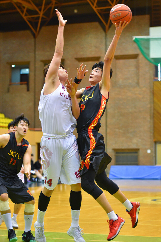 주전 가드인 양준우가 빠진 성균관대의 초반은 매우 답답했다. 김상준 감독이 우려했던 부분이 나온 모습이었다. 성균관대는 이날 전반에 경희대의 빠른 가드들의 압박에 제대로 대처하지 못했다. 설상가상으로 이윤수 마저 제 컨디션이 아니었다. 성균관대는 전반 한때 12점차(18-30)까지 벌어지기도 했었다.