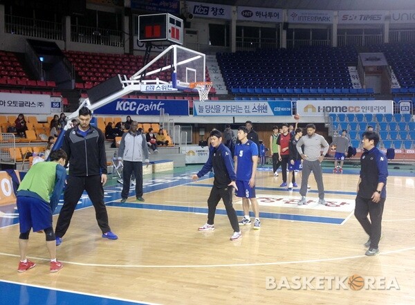 추승균 감독은 “어제도 수비 훈련을 많이 하고, 오늘도 수비에 좀 더 치중해서 훈련했다”고 했다. 특별히 이유를 설명하진 않았다. 전자랜드가 공격보다 수비가 좀 더 강한 팀이라고 하자 “전자랜드가 실점 1위(낮은 기준), 우리가 2위”라고 답했다.