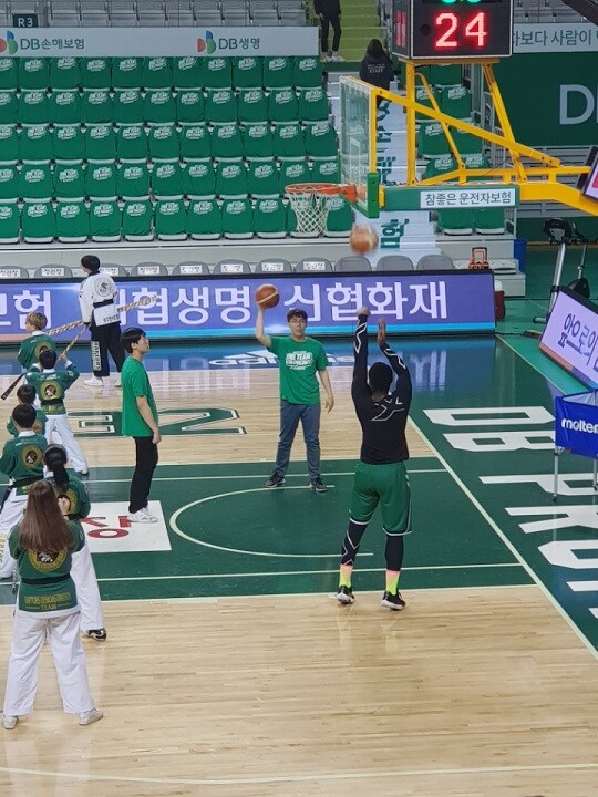 [바스켓코리아 = 원주/이성민 기자] 버튼이 경기 세 시간 전부터 슛 연습을 하며 승리 의지를 활활 태웠다.