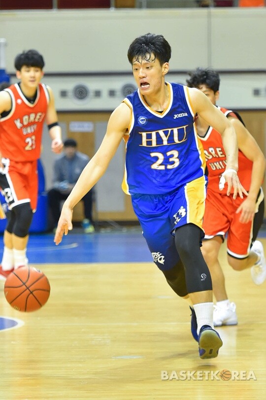 한양대는 2쿼터 한 때 31-13, 18점 차이까지 앞섰지만, 3쿼터 막판 역전까지 허용했다. 이후 4쿼터까지 역전과 동점, 재역전을 주고받으며 접전을 펼쳤다. 경기종료 1분여를 남기고 78-78, 동점이었다. 이때 김민진의 돌파에 이어 이승훈의 속공으로 82-78로 달아나 승리에 다가섰다.