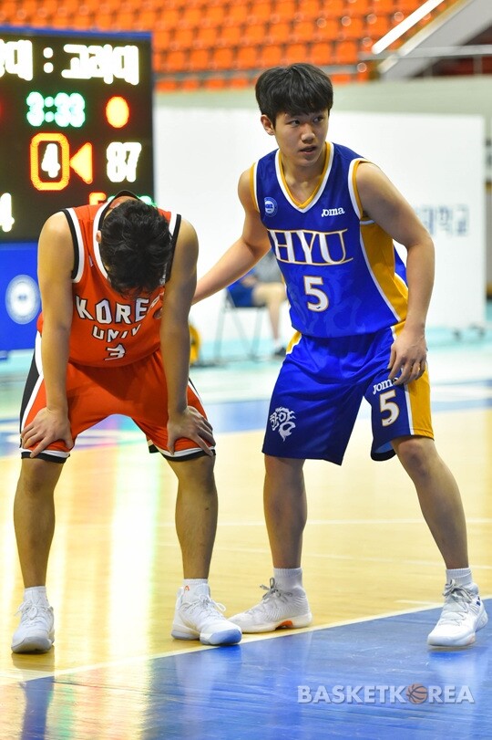 한양대는 부상 선수들이 많아 이날 7명의 선수만으로 경기에 나섰다. 한양대 정재훈 감독은 이날 경기 전에 “파울과 부상”을 가장 경계했다. 그렇지만, 4쿼터 중반 김윤환에 이어 송수현이 5반칙 퇴장 당해 어려운 상황에 놓였다.