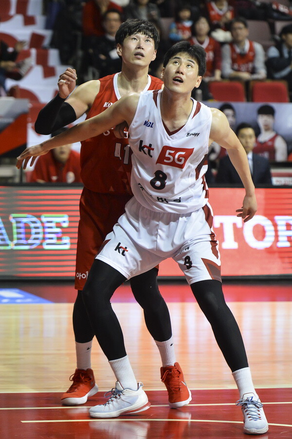 “남게 된 이유는 지난 시즌 중에 KT로 트레이드 되어 왔다. KGC인삼공사에서는 오세근 형 백업 선수로 출전시간이 적었는데 KT에선 출전 기회를 보장해주셨다. 제가 다른 구단에게 가치를 인정받을 수 있게 코트에 내보내주신 게 많이 감사했다.