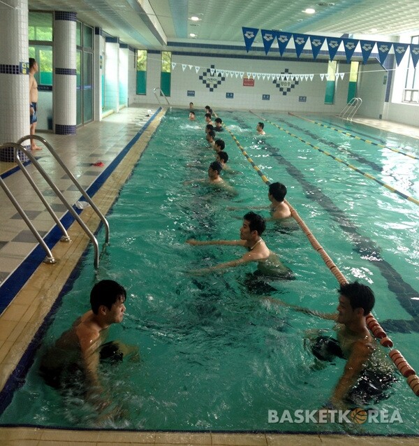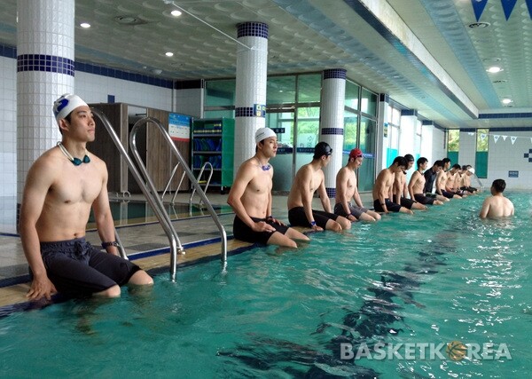 [바스켓코리아 = 이재범 기자] “수영장에서 점프 등 평소 하지 않는 운동을 해서 재미있게 즐기면서 하고 있다.”