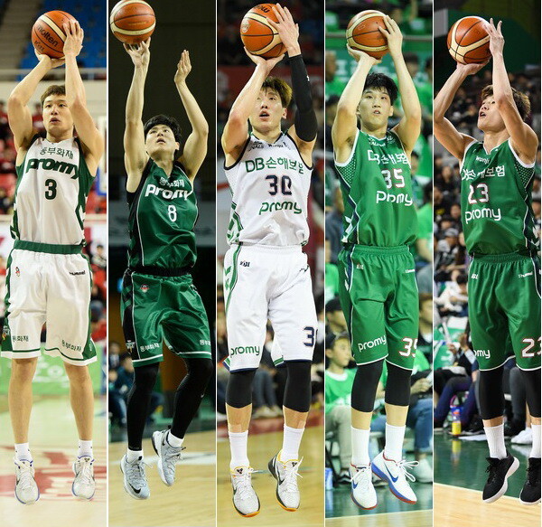 | DB 소속으로 상무에서 군 복무 중인 허웅, 김창모, 두경민, 서민수, 김영훈(사진 왼쪽부터) |