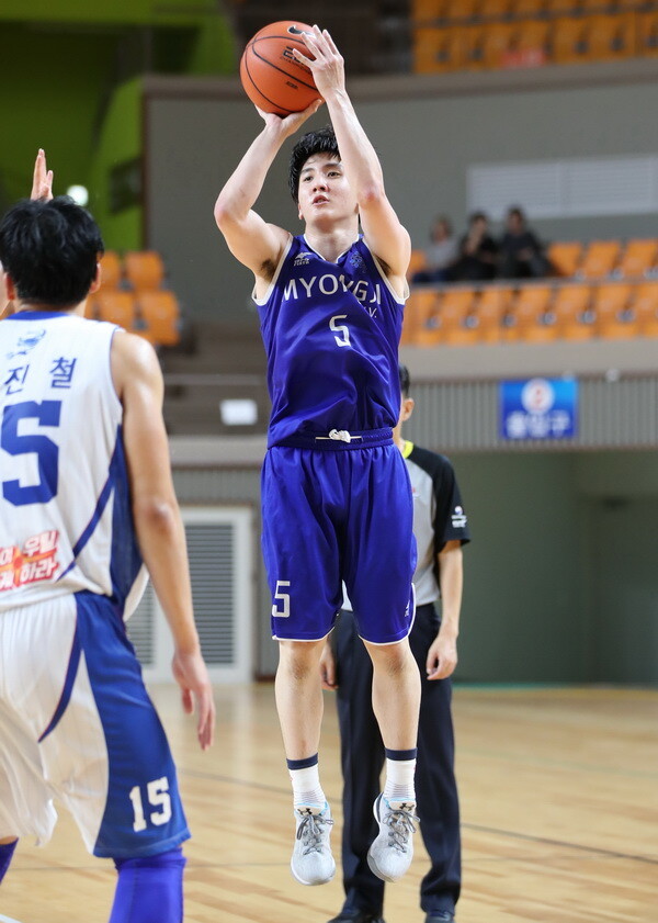 명지대는 이날 3점슛 30개 시도해 11개(37%) 성공했다. 이정민(3점슛 5개 27점)과 임정헌(3점슛 4개 15점)이 외곽포를 주도했다. 성균관대의 3개(22개 시도, 14%)보다 8개 더 많은 3점슛을 넣었다. 성균관대와 대등한 경기를 펼친 원동력이다.