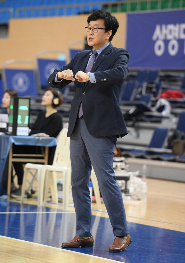 | 상명대를 2년 연속이자 통산 3번째 대학농구리그 플레이오프 진출로 이끈 이상윤 감독 |