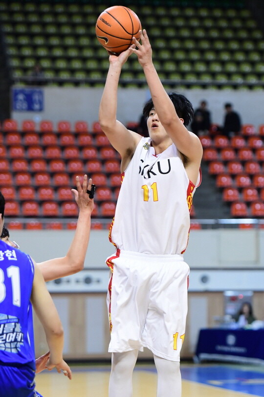 [바스켓코리아 = 행당/신종연 웹포터] 성균관대 센터 이윤수(204cm, 센터, 4학년)가 20득점 15리바운드 더블더블을 기록하며 팀 승리를 이끌었다.