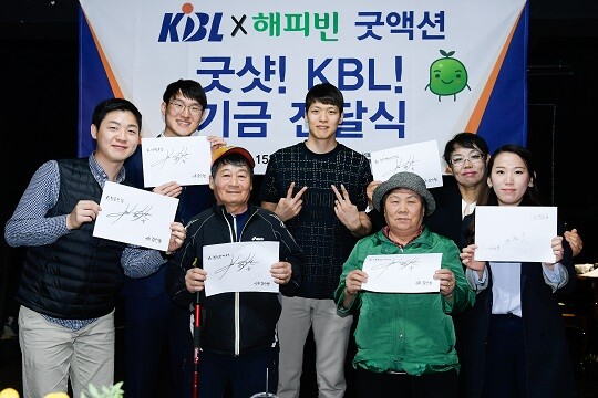 15일 서울 상도동 동작재가노인지원센터 지하 1층에서 KBL과 해피빈이 함께 하는 ‘굿샷! KBL!’ 캠페인 기금 전달식이 열렸다.