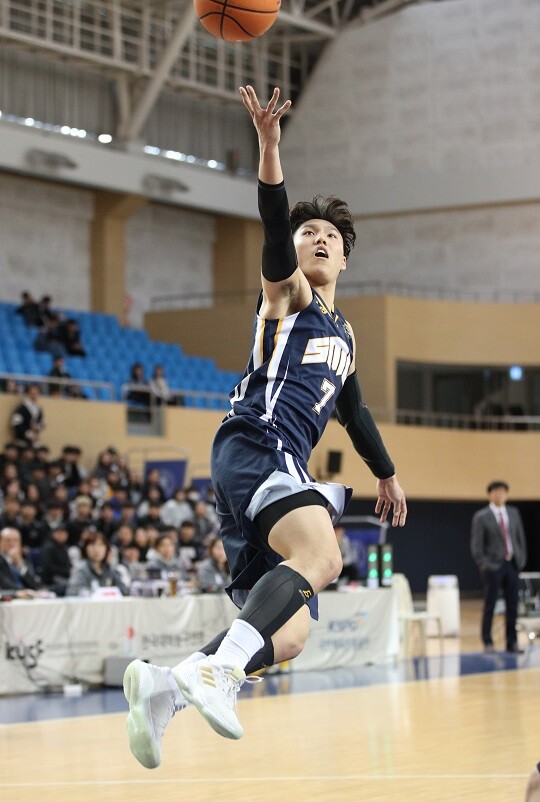 곽정훈(188cm, 포워드)이 그야말로 날아다닌 경기였다. 스타팅 멤버로 코트에 나선 곽정훈은 1쿼터부터 4쿼터까지 공수 양면에 걸쳐 맹활약했다. 공격에서는 내외곽을 가리지 않았다. 장기인 발군의 운동능력을 앞세운 돌파와 속공으로 조선대 수비를 유린했다. 1쿼터 초반 스틸에 이은 호쾌한 속공 덩크슛을 터뜨리기도 했다. 2쿼터 위기의 순간에는 연속 3점포로 팀을 구해냈다.