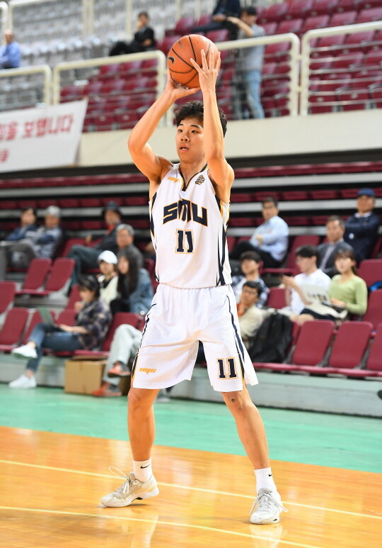 그는 1쿼터에 3점슛 2개 포함 10점을 몰아쳤다. 2쿼터에는 3점슛 3방을 집중시켰다. 결과로 상명대는 전반을 52-32로 리드하며 마칠 수 있었다.