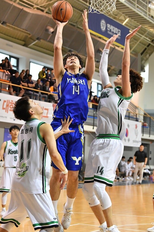 연세대는 2쿼터 초반 힘을 냈다. 건국대의 낮은 높이를 공략하면서 득점을 쌓았다. 신승민과 김경원은 우월한 신체를 활용해 점수를 추가했다. 양재혁의 속공과 전형준의 3점도 나온 연세대는 건국대와의 격차를 벌렸다.
