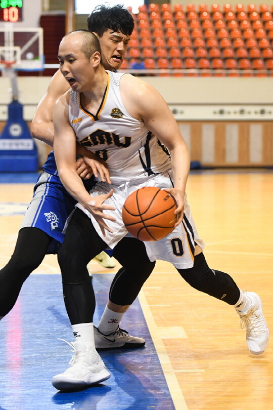 대학 최고 수준의 힘을 자랑하는 곽동기(193cm, F)는 골 밑에서 SK의 빅맨들을 상대로 밀리지 않으며, 상명대의 중심에 섰다.