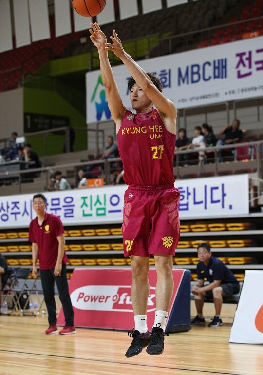 고전하긴 했지만, 경희대가 무너지지 않았던 건 이용기(191cm, F, 3학년)의 활약이 있었기 때문이다. 이날 이용기는 3점슛 1개 포함 16점 4리바운드로 활약했다. 2쿼터에만 11점을 집중시키며 1쿼터에 뒤졌던 점수를 되찾아왔다.