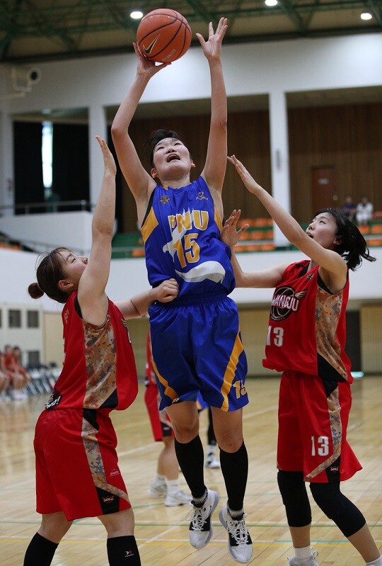 수원대학교는 17일 경북 상주실내체육관 구관에서 열린 제35회 MBC배 전국대학농구 상주대회 여자대학부 E조 예선 용인대학교와 경기에서 69-49로 승리했다.