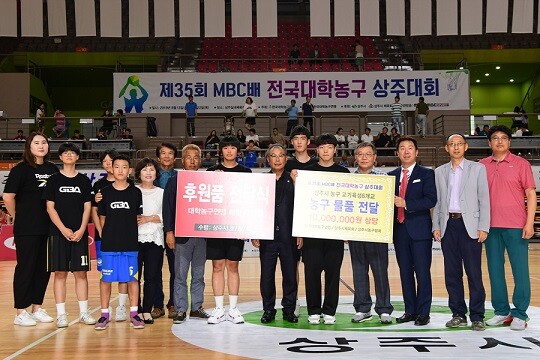 한국대학농구연맹과 상주시농구협회, 상주시체육회는 상주 지역 농구 발전을 위해 8월 22일(목) 경북 상주시 실내체육관 신관에서 열린 제35회 MBC배 전국대학농구대회 고려대와 중앙대의 남대 1부 결승전 하프타임에 농구용품 전달식을 가졌다.